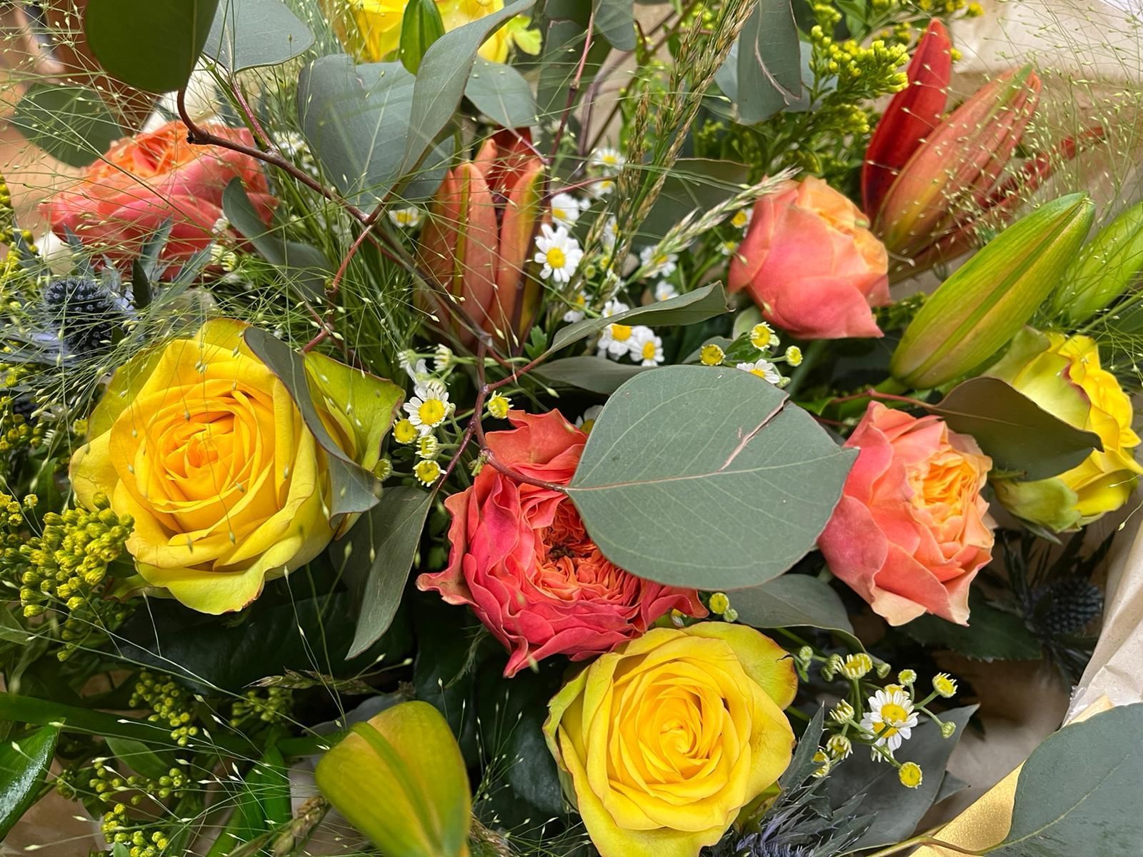 ich kombiniere natürliche heimische Blumen und traumhafte Rosen mit jahreszeitlichem Beiwerk wie Zweige Kräuter Gräser Eukalyptus zu einem Werkstück der Faszination.